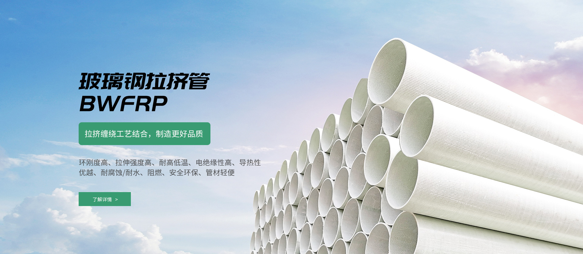 纖維編繞拉擠電纜保護管(BWFRP),是一種新型電纜導管材料。采用高性能纖維復合材料和環(huán)氧樹脂為原材料,由內編繞層、中間層、外編繞層構成,通過拉擠工藝成型。這種新型的電纜導管產品具有傳統(tǒng)管材無法比擬的優(yōu)點,是取代傳統(tǒng)玻璃鋼管的一種結構與性能俱佳的產品,適用于電力電纜及通信電纜的保護套管使用。
